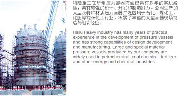 蘇州海陸重工股份有限公司位于江蘇省張家港市開發(fā)區(qū),是國內(nèi)一流的節(jié)能環(huán)保設(shè)備的專業(yè)設(shè)計(jì)制造企業(yè),目前并已初步形成鍋爐產(chǎn)品、大型壓力容器、核電設(shè)備、低溫產(chǎn)品、環(huán)保工程共同發(fā)展的業(yè)務(wù)格局。公司創(chuàng)建于1956年,注冊資本51640萬元,占地面積近50萬平米。公司下設(shè)八個(gè)控股子公司,一個(gè)余熱鍋爐研究所,在瑞士、北京、武漢、南京、上海、杭州、廣州等地設(shè)立分支機(jī)構(gòu),擁有雄厚的研發(fā)實(shí)力。公司秉承“科技領(lǐng)航、業(yè)界先鋒”的發(fā)展理念,注重研究廢熱、余熱利用和環(huán)境保護(hù)相結(jié)合的新技術(shù)研發(fā),自主設(shè)計(jì)能力居同行前列;公司承擔(dān)過國家863計(jì)劃,江蘇省科技成果轉(zhuǎn)化專項(xiàng)資金,榮獲國家科技進(jìn)步二等獎(jiǎng),產(chǎn)品擁有核心自主知識產(chǎn)權(quán)并取得專利50多項(xiàng);公司推行國際先進(jìn)的管理體系標(biāo)準(zhǔn)和認(rèn)證,擁有 A級鍋爐制造許可證,A1、A2、A3級壓力容器設(shè)計(jì)和制造許可證,取得了民用核承壓設(shè)備制造資格許可證、美國機(jī)械工程師學(xué)會(huì)(ASME)“S”、“U”鋼印,通過了ISO9001質(zhì)量體系認(rèn)證、健康體系認(rèn)證和14000環(huán)境體系認(rèn)證;公司設(shè)備先進(jìn),裝備精良,專業(yè)嚴(yán)謹(jǐn)?shù)闹圃炖砟畲蛟斐銎焚|(zhì)非凡、質(zhì)量一流的“海陸”品牌聲譽(yù)。
